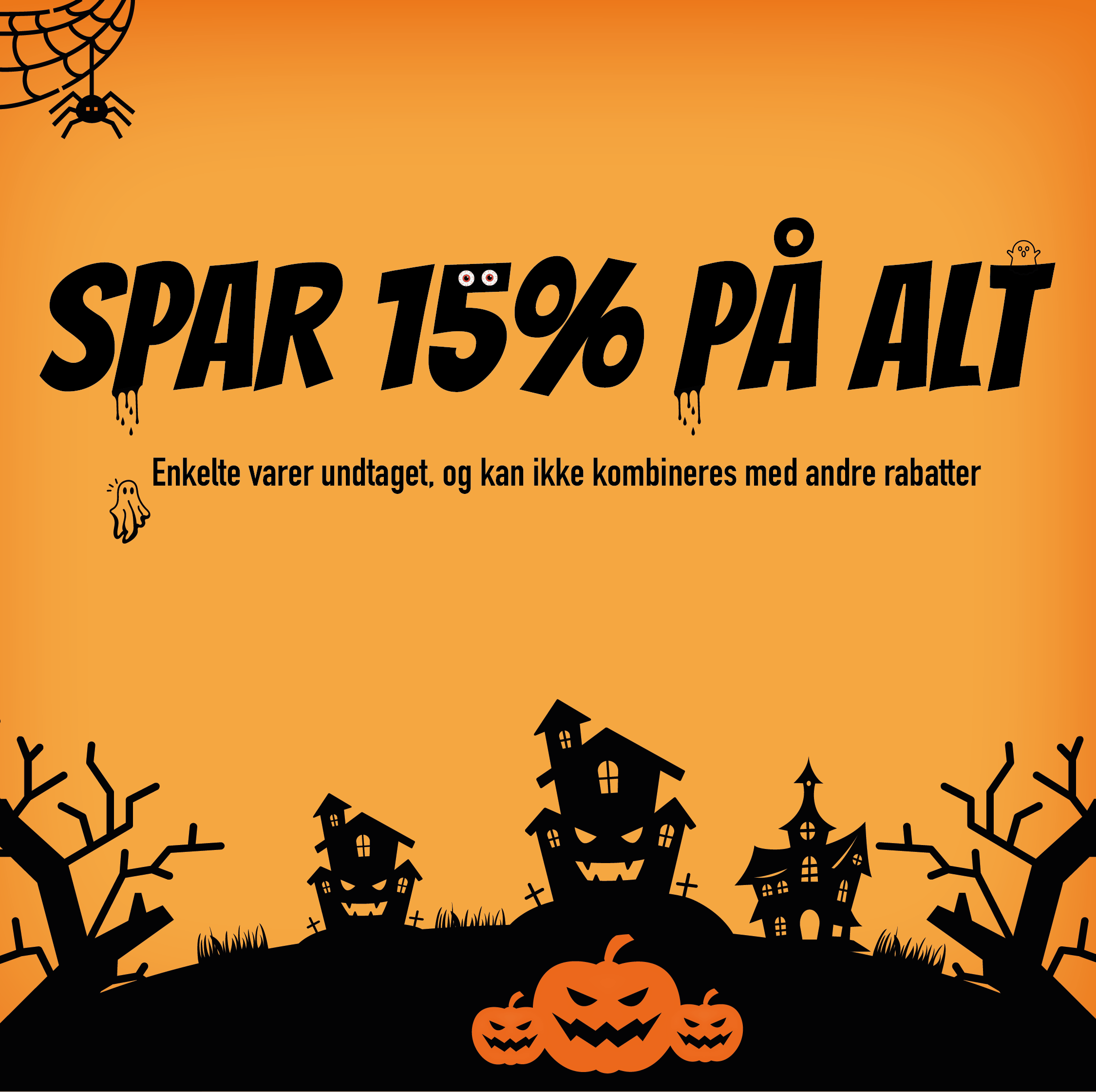 Glem alt om Trick or Treat – i år får du en ren treat fra os! Vi er i gavehumør og giver dig intet mindre end 15% rabat på alle dine favoritter. Uanset om du skal have fyldt lageret op eller prøve et nyt produkt, er det nu, du skal slå til.