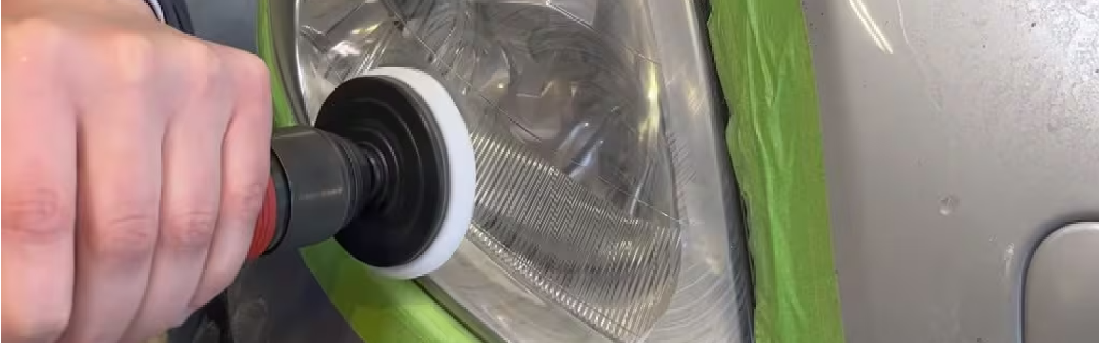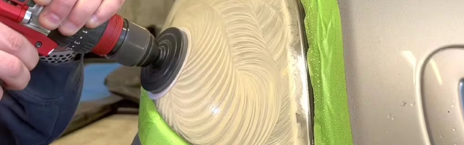 - Afdækning: Sæt tape på lakken hele vejen rundt om lygten, så du ikke rammer bilen.