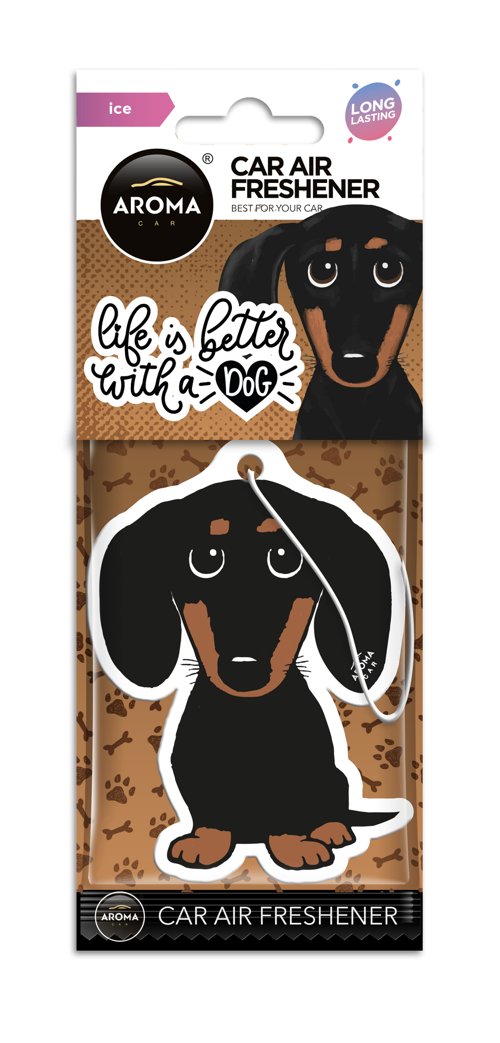 Vi kunne ikke stå for denne lille gravhund bland AromaCars duftfriskere. Den forestiller en lille gravhund - magen til vores Marketing Manager Helenas hund Svendsen !