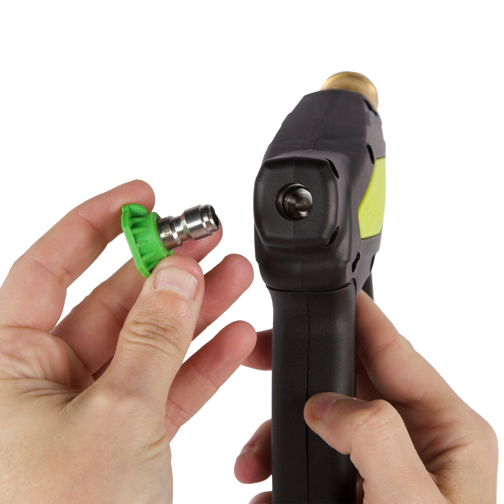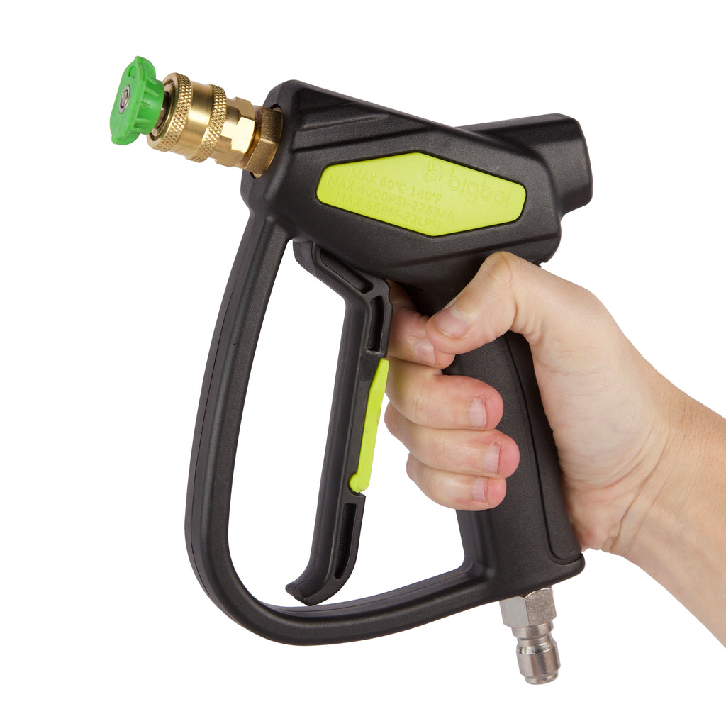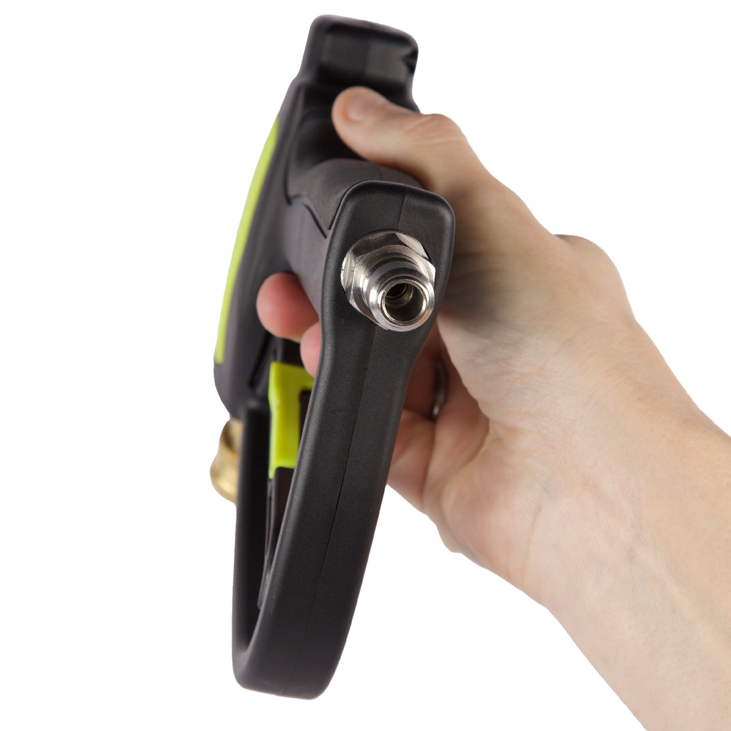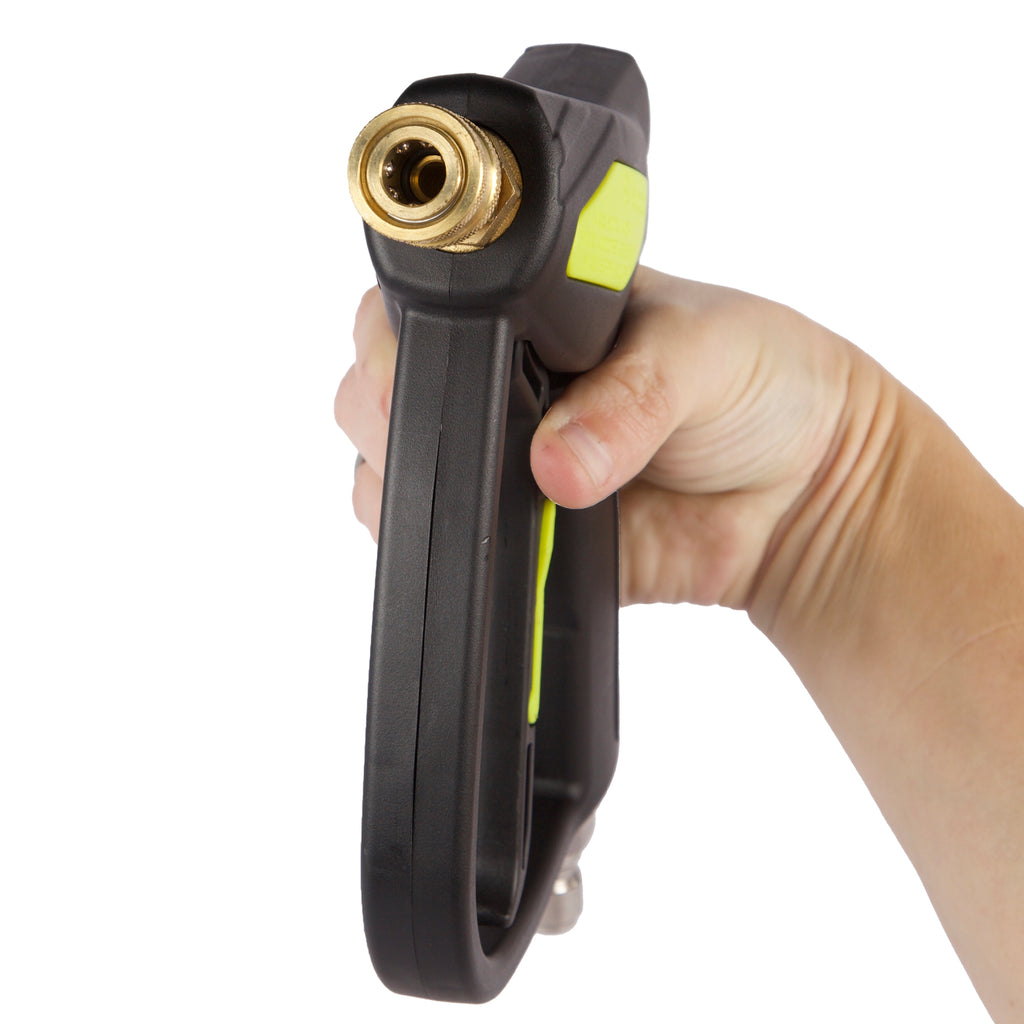 Et ekstremt kort og kompakt pistolgreb, der giver dig den ultimative kontrol, når du bruger din WashR Pro, Quad eller en anden højtryksslange med 3/8" hurtigkobling.