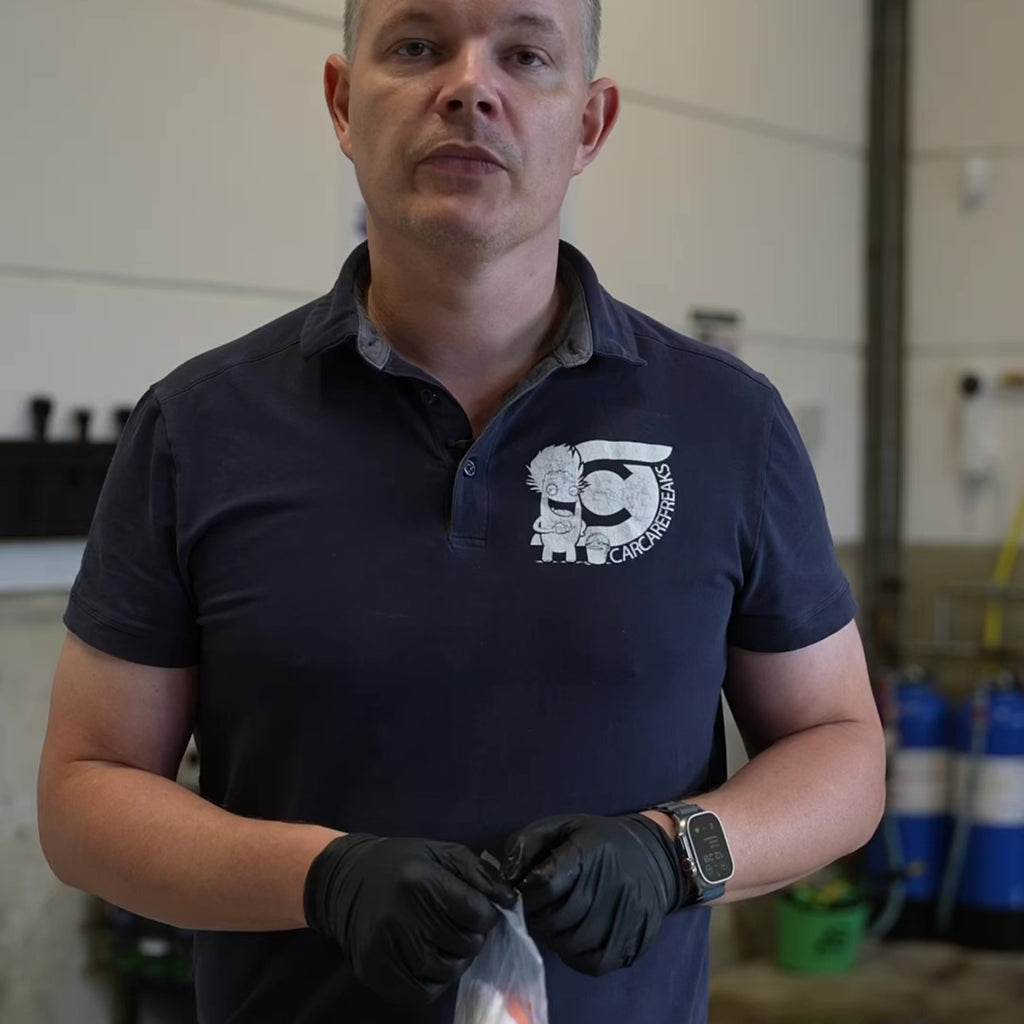 I vante CarPro stil, er Hand Wash 2-sidet. Dvs. du har forsiden i microfiber samt bagsiden i tætsyet næt, hvori du placerer din hånd. Det har følgende 3 fordele: