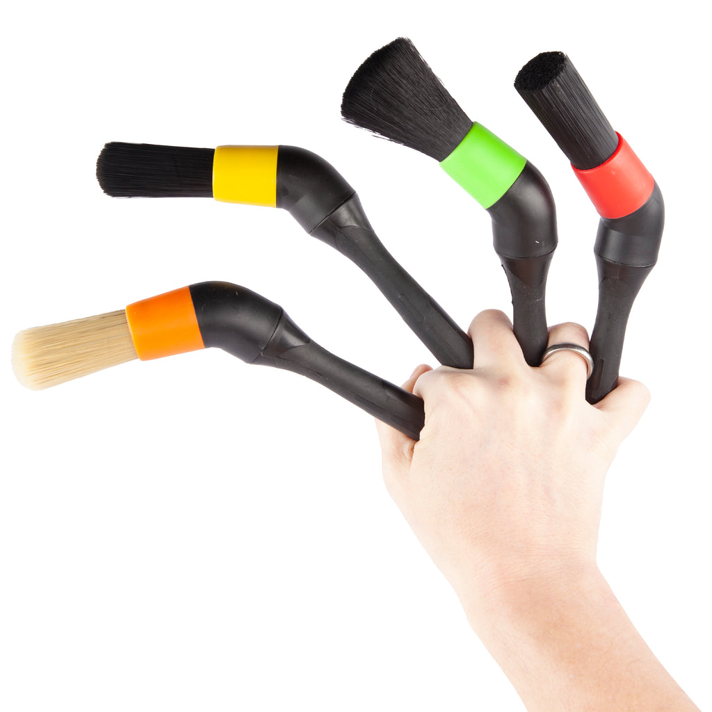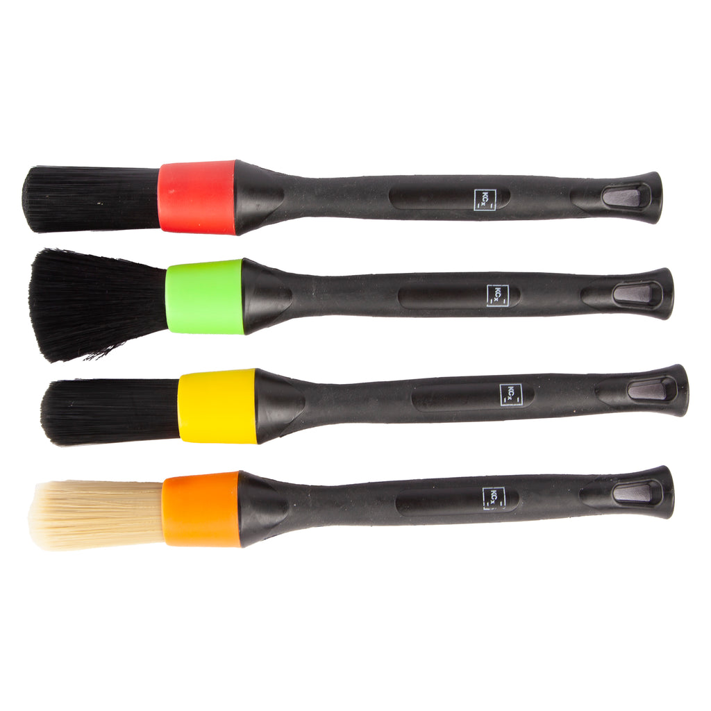 Gør forberedelsen og rengøringen af bilens eksteriør markant nemmere og mere professionel med disse farvekoordinerede detailing pensler fra Koch Chemie. Sættet indeholder fire specialdesignede pensler med justerbar vinkel – vinklen kan skrues af og på for at nå selv de mest utilgængelige steder som f.eks. bag fælge, i gitre eller under spoilere mv.