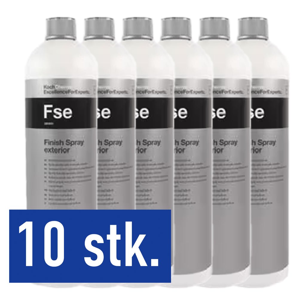 Finish Spray Exterior eller FSE som Koch Chemie kalder den, er et produkt i helt sin egen kategori. Den kombinere egenskaberne fra en quick detailer med de dybderegørende egenskaber fra en kalkplet fjerner. Den renser derfor for kalkpletter og mineraler i lakken og herved gør den super jævn og blank. Modsat andre kalkplet fjernere, fedter den ikke og efterlader ikke restprodukt som skal afspules. Et fremragende produkt til at afslutte enhver vask med og hermed undgå mineralophobning i lakken. Ja, eller hvis uheldet er ude - hurtigt få fjernet kalkpletterne