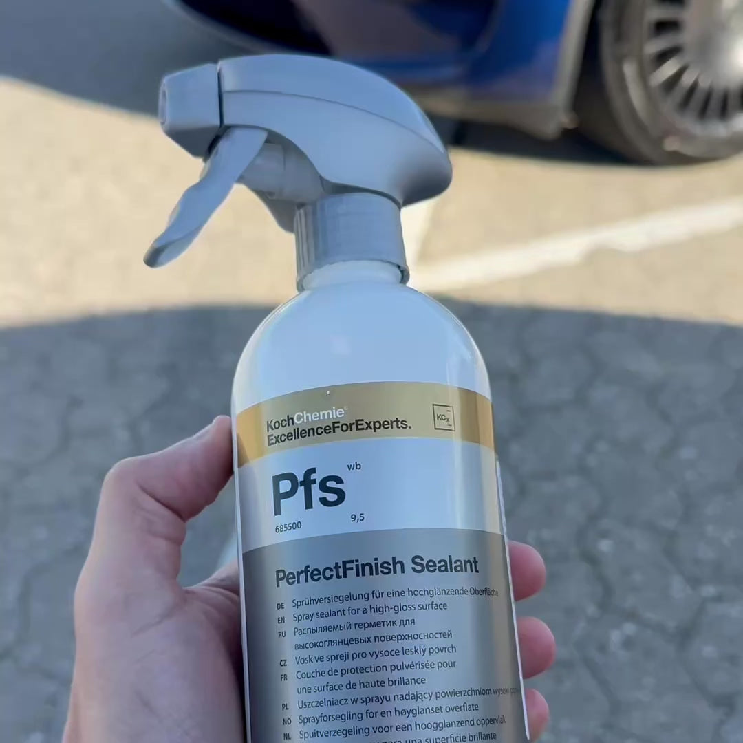PerfectFinish Sealant, også kaldt for PFS, er en spraybaseret lakforsegler, som kan bruges som primære lakbeskyttelse eller til at toppe beskyttelsen op på en keramisk coating. PerfectFinish Sealant giver lakken en ekstrem flot glans, samt en langtidshold vand og smudsafvisende effekt som gør køretøjet nemt at rengøre. Kombineret med en behagelig frugtagtig note, er produktet behageligt at bruge.