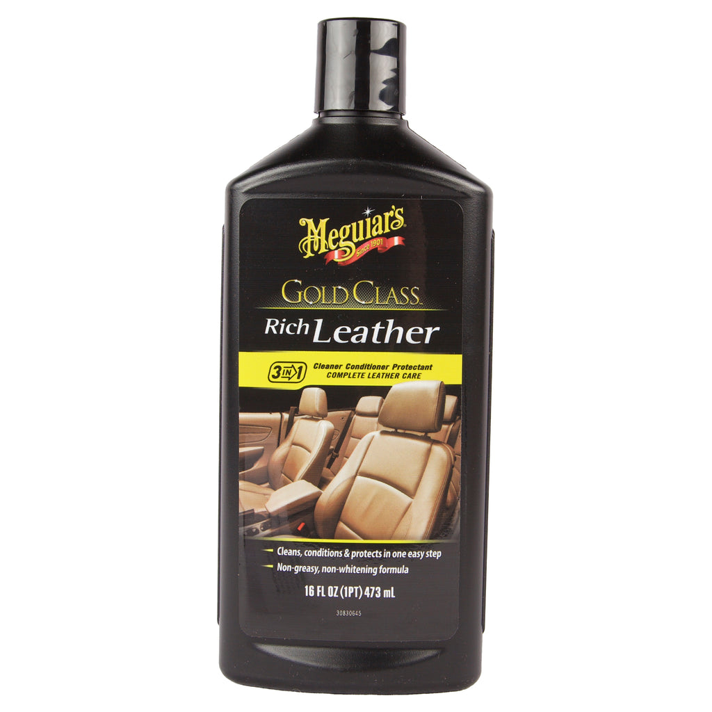 Meguiar's Gold Class Rich Leather Cleaner & Conditioner er en 3-i-1 creme til rengøring, conditionering og beskyttelse af bilens læderinteriør, herunder sæder, rat og trim. Den ikke-fedtede formel fjerner snavs og fedt uden hvide rester eller klæbrighed og bevarer læderets naturlige udseende og blødhed.