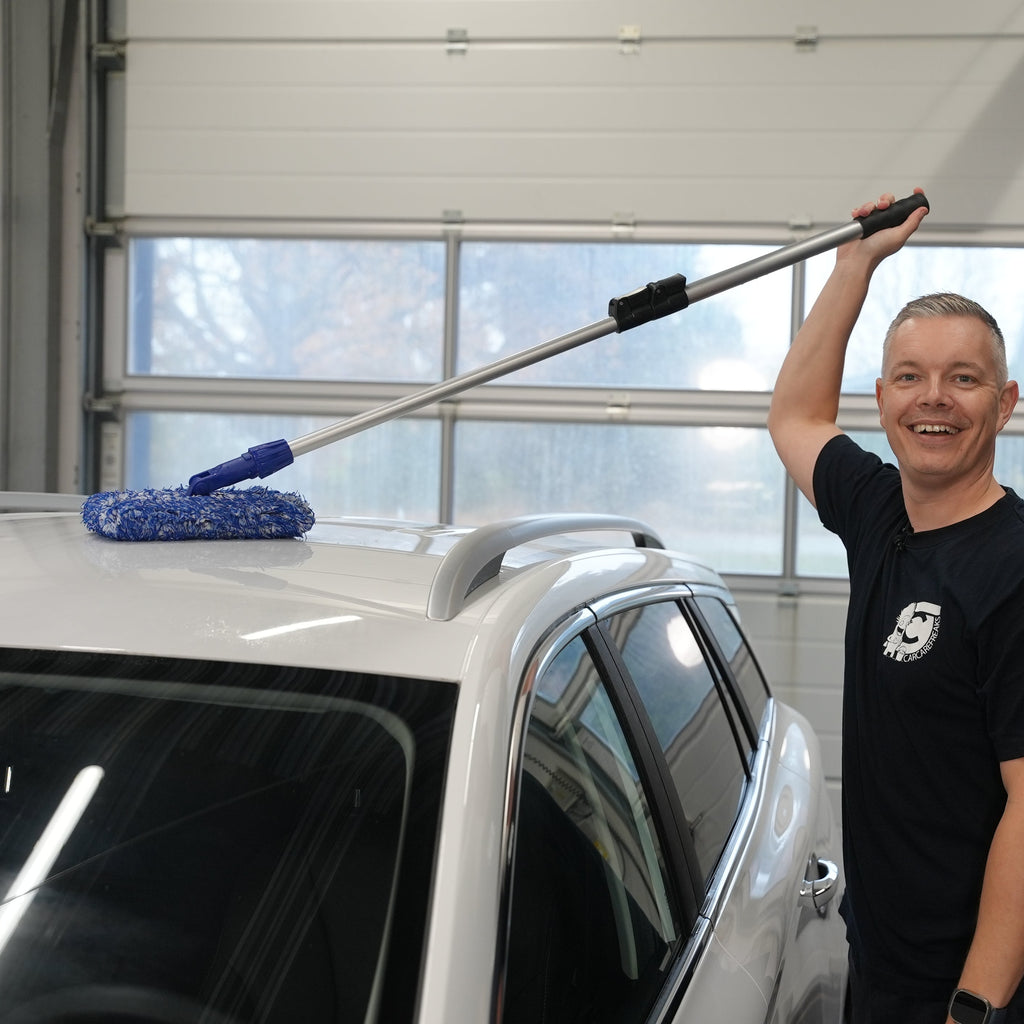 Med Telescopic Wash Pole fra Nordic Detailing Supplies kommer du helt tæt på selv de mest utilgængelige områder. Har du en varevogn, SUV, autocamper, trailer eller en personbil hvor det er svært at nå? Denne forlængerstang er skræddersyet til dig, der vil vaske grundigt og korrekt – uden at klatre eller strække dig unødigt. Du får en teleskopisk stang med et fleksibelt hoved beklædt med en microfiber som du måske kender fra vores øvrige premium vaskehandsker i shoppen, så du aldrig behøver at gå på kompromis med kvaliteten.