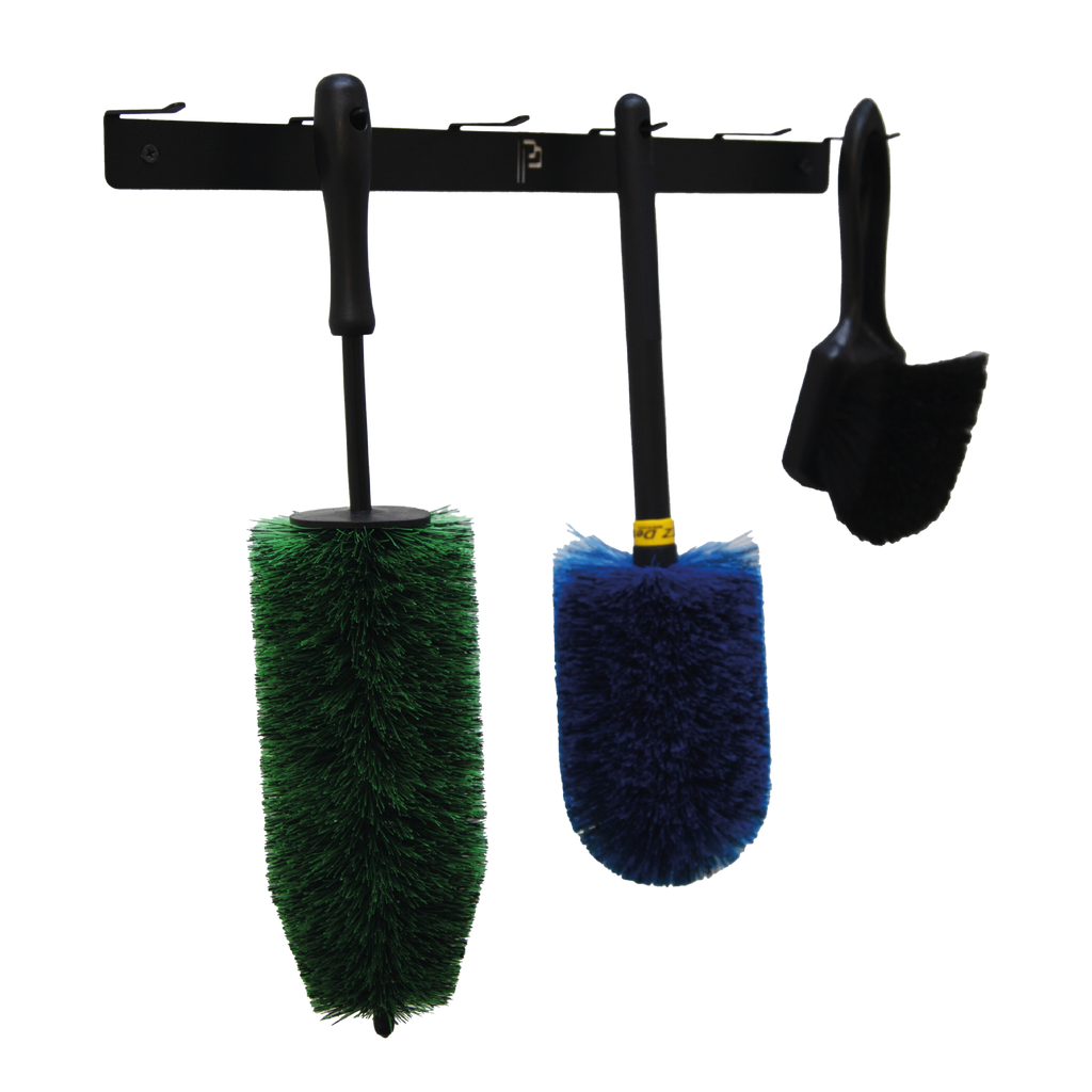 Holderen er lavet med 6 stk. s-krogs øjer, hvor du kan hænge dine fælgbørster eller pensler. Den specielle form gør, at når først at børsterne er hængt op – så falder de ikke ned igen. Og krogene er stærke. De kan holde en børste der vejer op til 500 gram. Sådan en børste har vi endnu ikke stødt på endnu 🙂