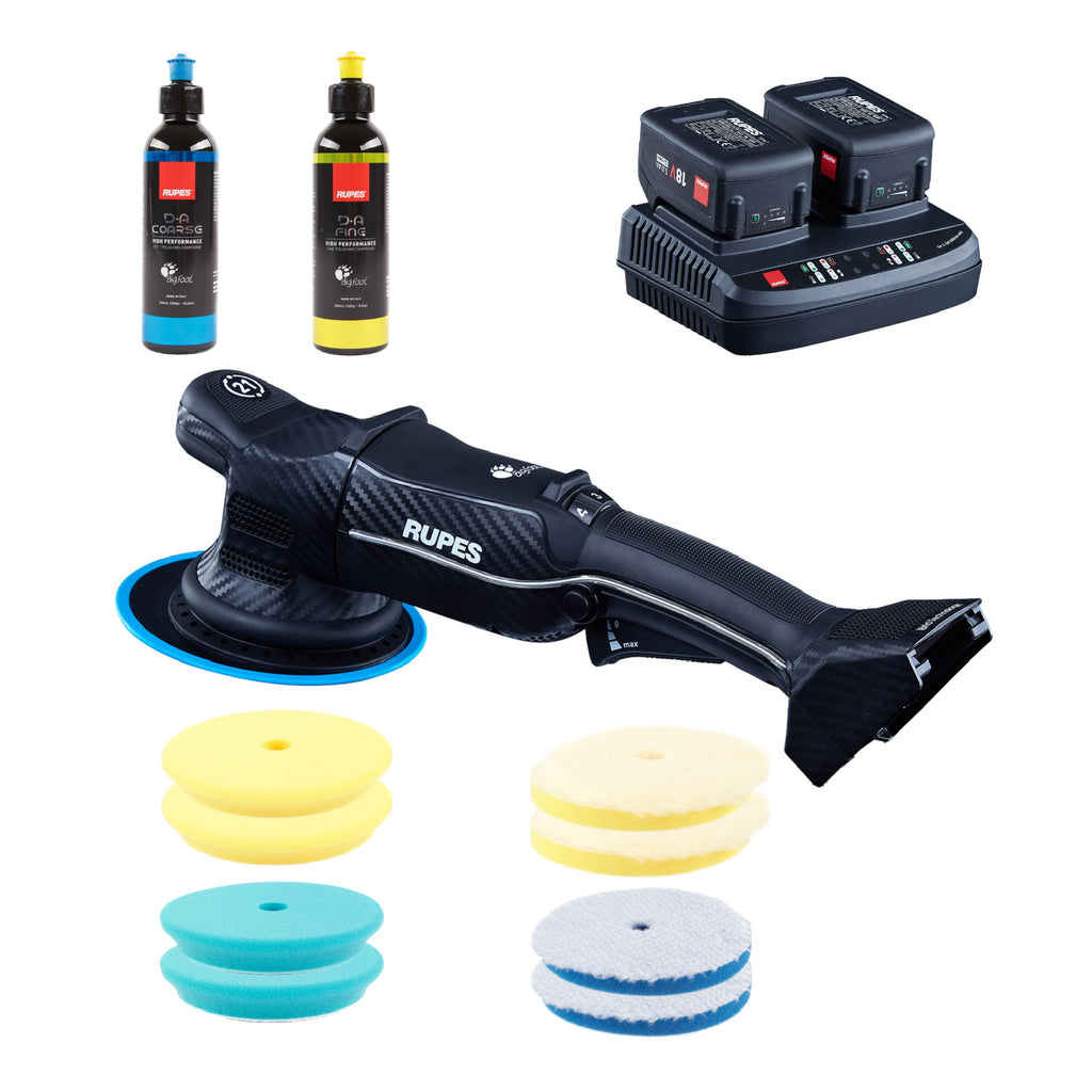 Rupes har for en begrænset periode lavet dette komplette kit, hvor du udover HLR21 polermaskinen også får pads, polermidler og en microfiber klud med. Alt sammen fra Rupes. Et super fedt sæt som får dig igang med at opleve friheden på batteri, lige så snart du pakker maskinen ud af æsken.