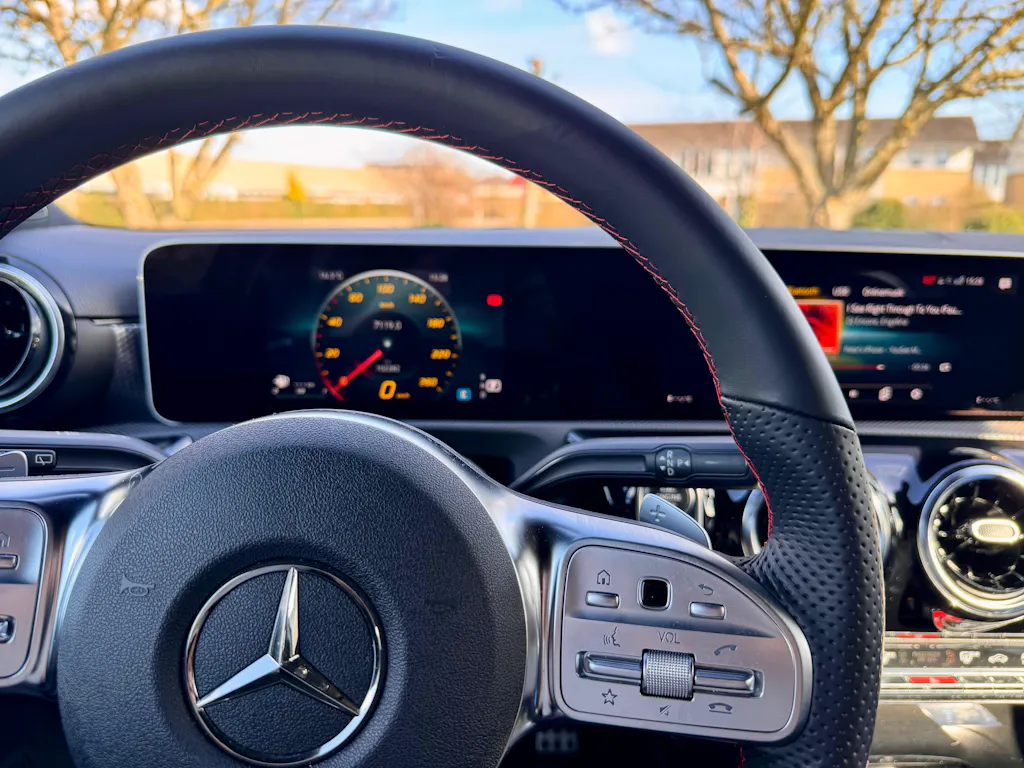 Nu står det som nyt, godt greb om rattet og flot mat læder.