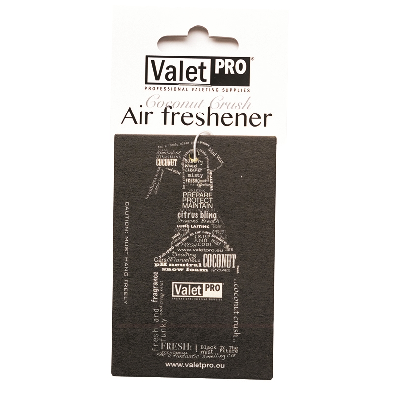 Hængende luftfrisker fra Valet Pro. Perfekt til at holde din bil lugtende frisk og ren. Coconut Crush har en behagelig, distinkt kokosnødduft.