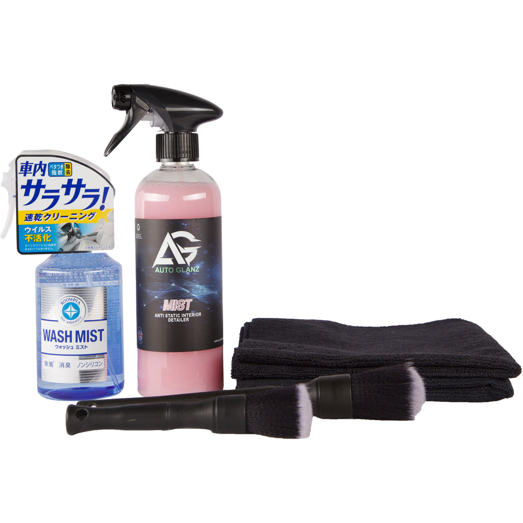 Börja med att spraya Soft99 Wash Mist på de ytor du vill rengöra. Använd mikrofiberdukarna för att torka av ytan. Använd detaljborstarna för ventilationshål, knappar och andra svåråtkomliga ställen. Avsluta med Auto Glanz Mist för att ge UV-skydd och antistatisk effekt på alla hårda ytor.